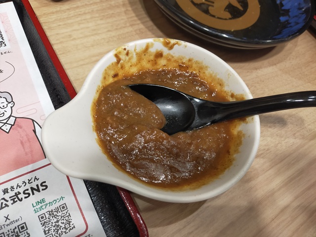 食事する前の写真を撮るのを忘れてしまって、うどんの食べ残り。