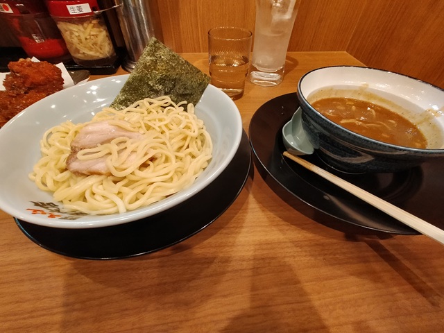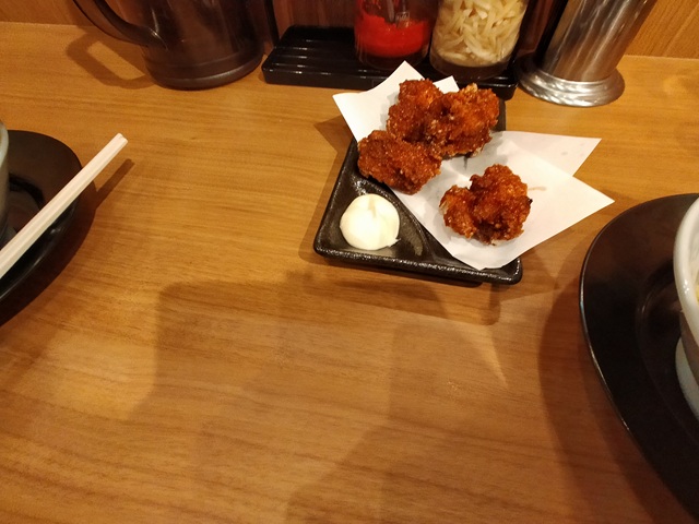 頼んだのは、塩とんこつとつけ麺、唐揚げ、小チャーハン。